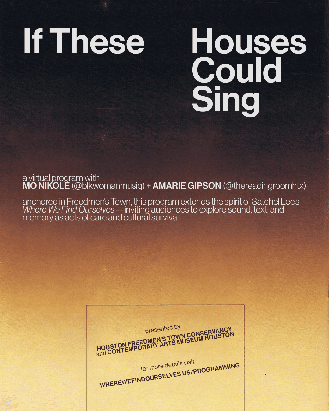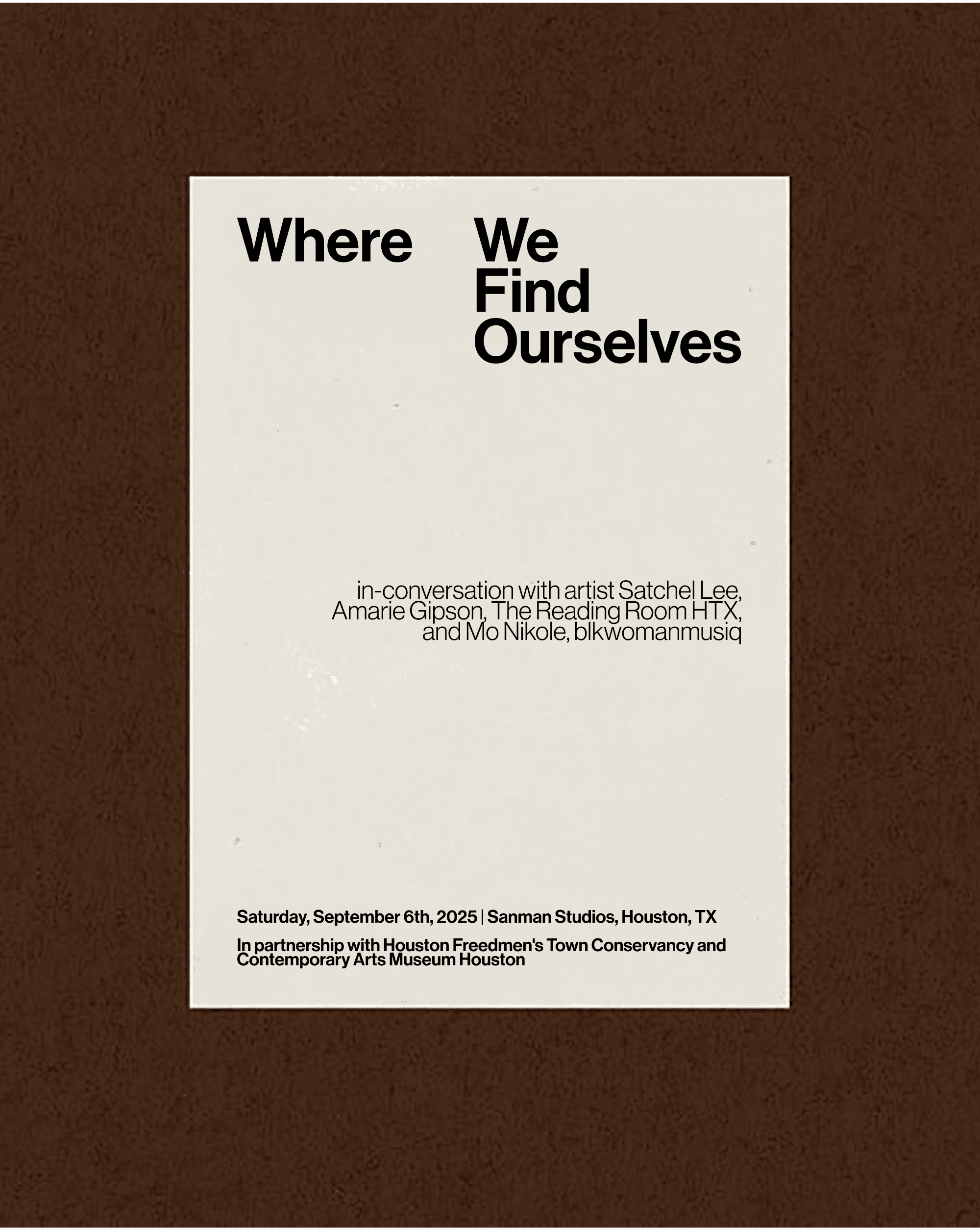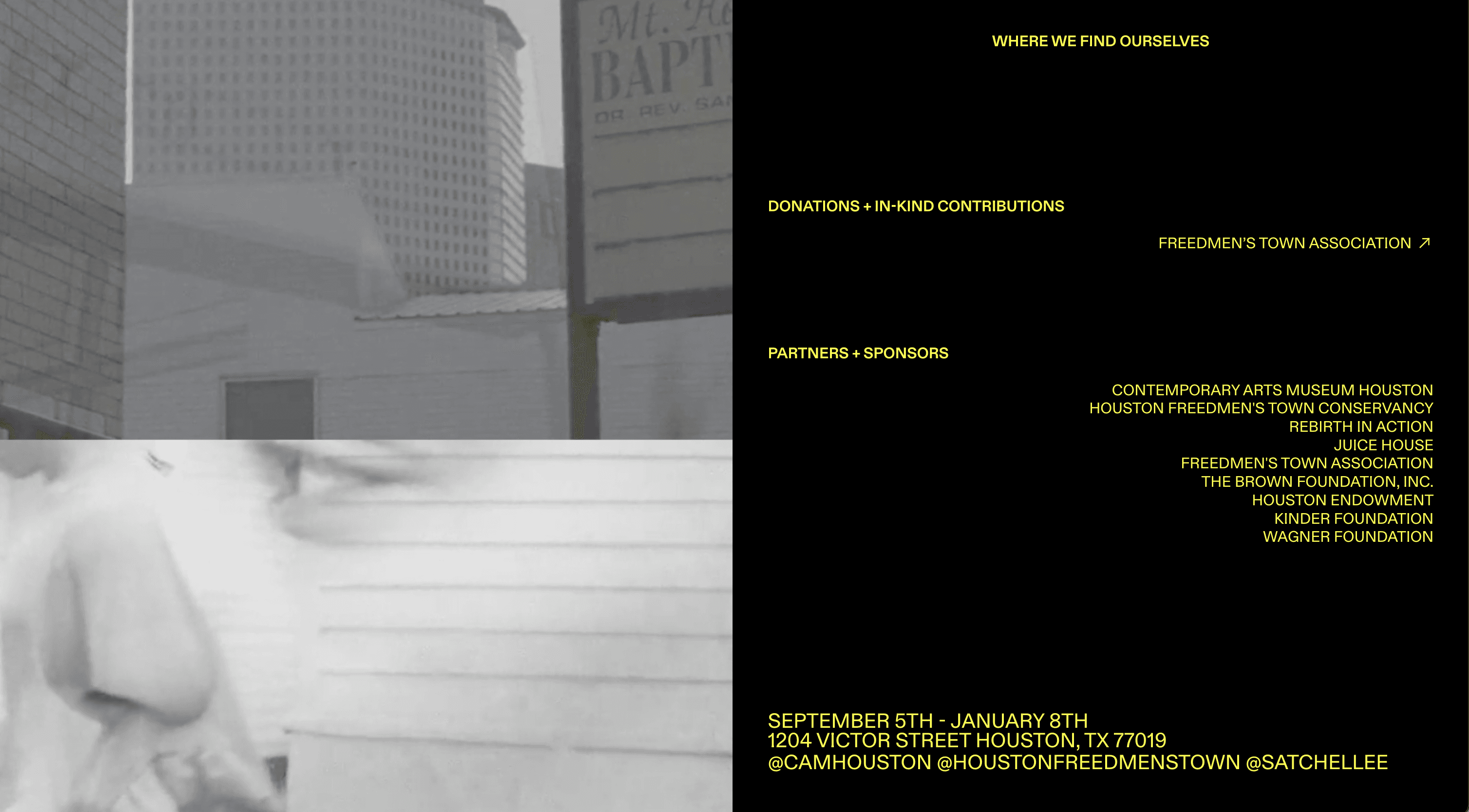 CONTEMPORARY ARTS MUSEUM HOUSTON X HOUSTON FREEDMEN'S TOWN CONSERVANCY / Where We Find Ourselves — Solo Exhibition by Satchel Lee